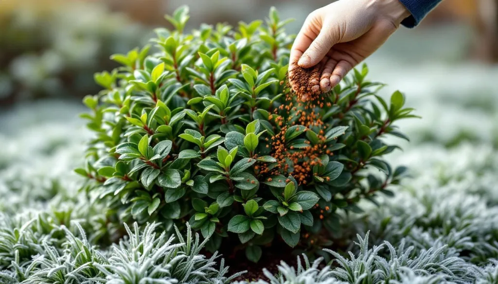 3. Streuen Sie eine Handvoll um die Basis des Buchsbaums.